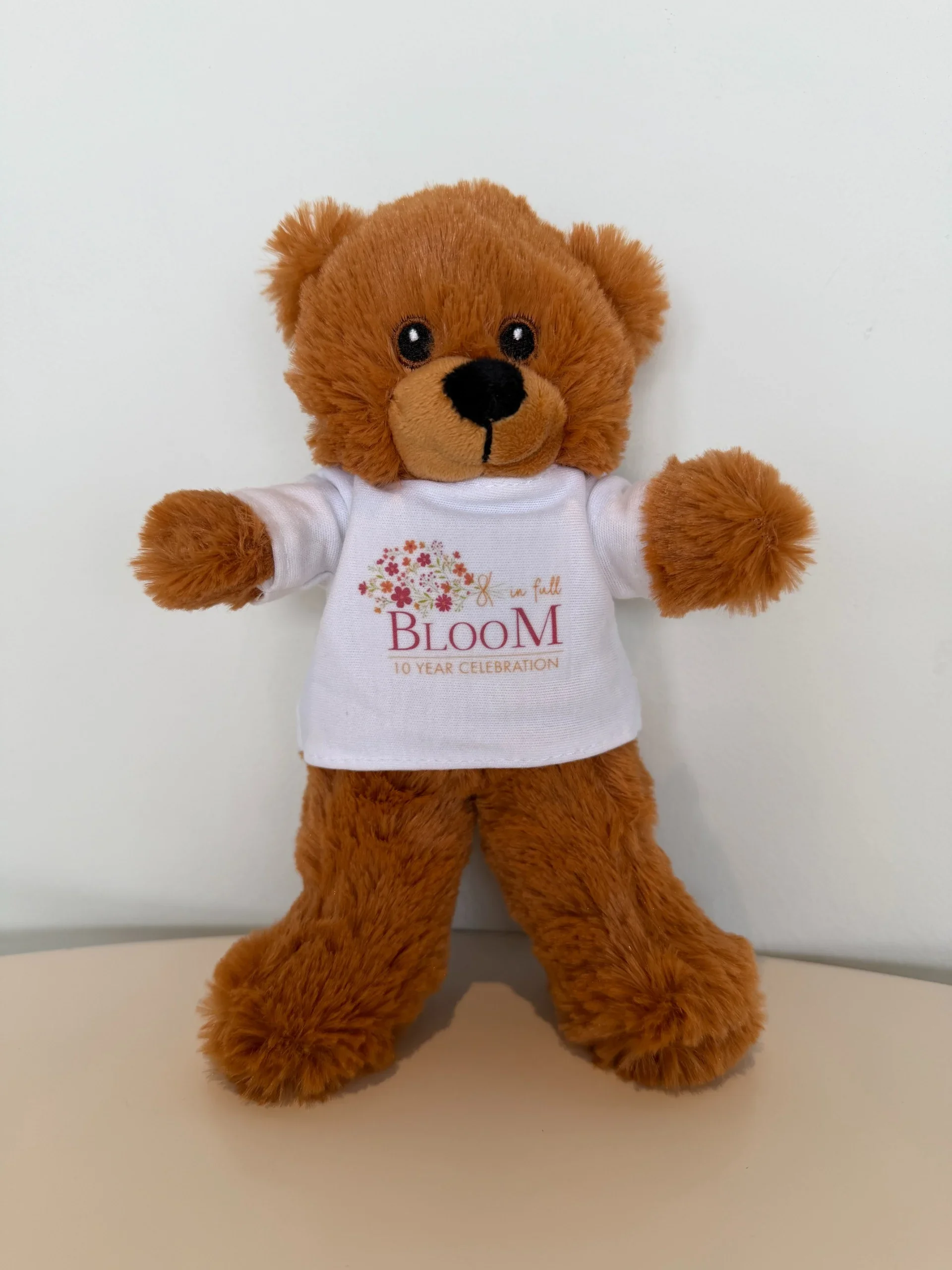 Our 2026 In Full Bloom Recital Bear ($10) is a soft and cozy keepsake for your dancer to remember this year's 10th anniversary show. Our teddy bear is wearing a recital logo t-shirt with "In Full Bloom - 10 Year Celebration"!