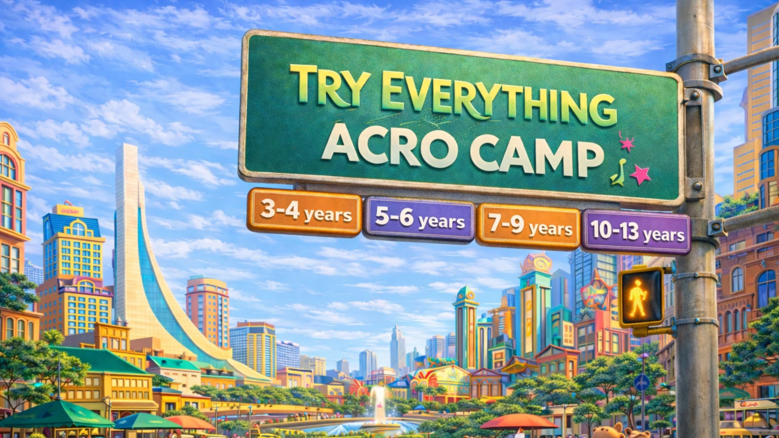 Inspired by the adventurous spirit and big dreams of Zootopia, Try Everything Acro Camp encourages dancers to be brave, try new things, and believe in themselves. Campers will explore beginner acro skills along with energetic hip hop & jazz combinations that build strength, coordination, and confidence.