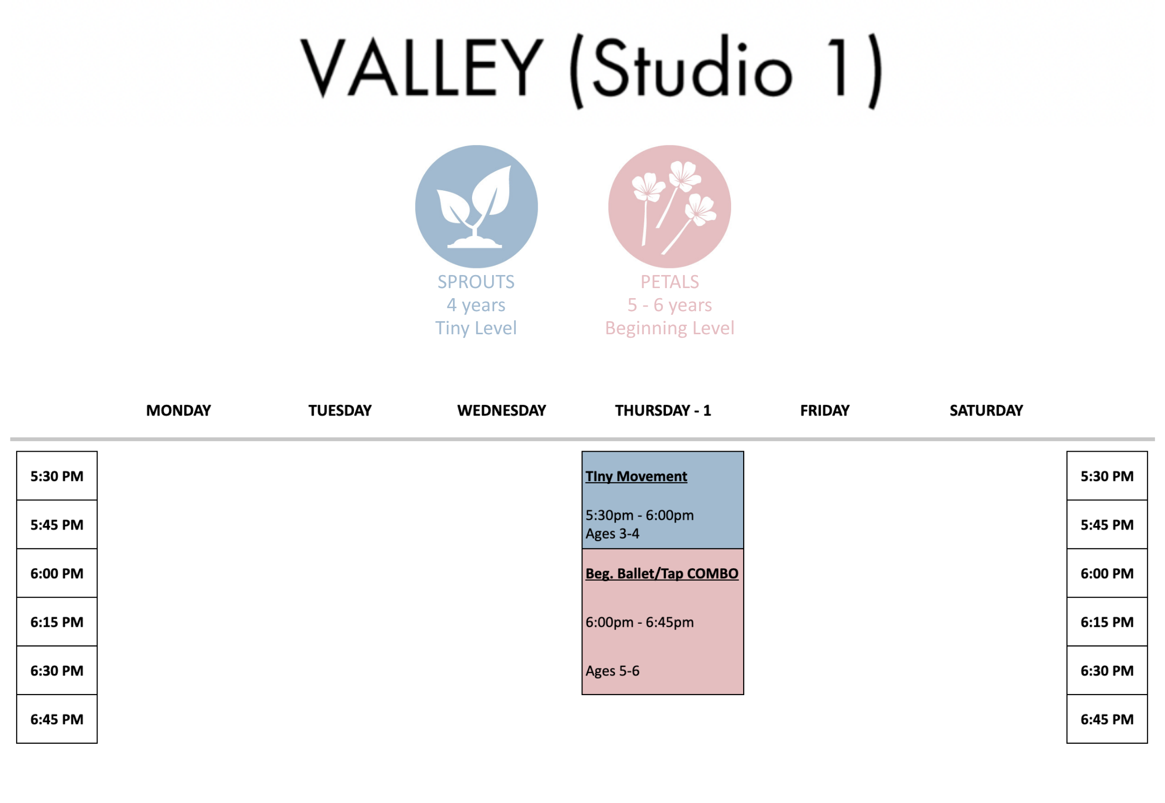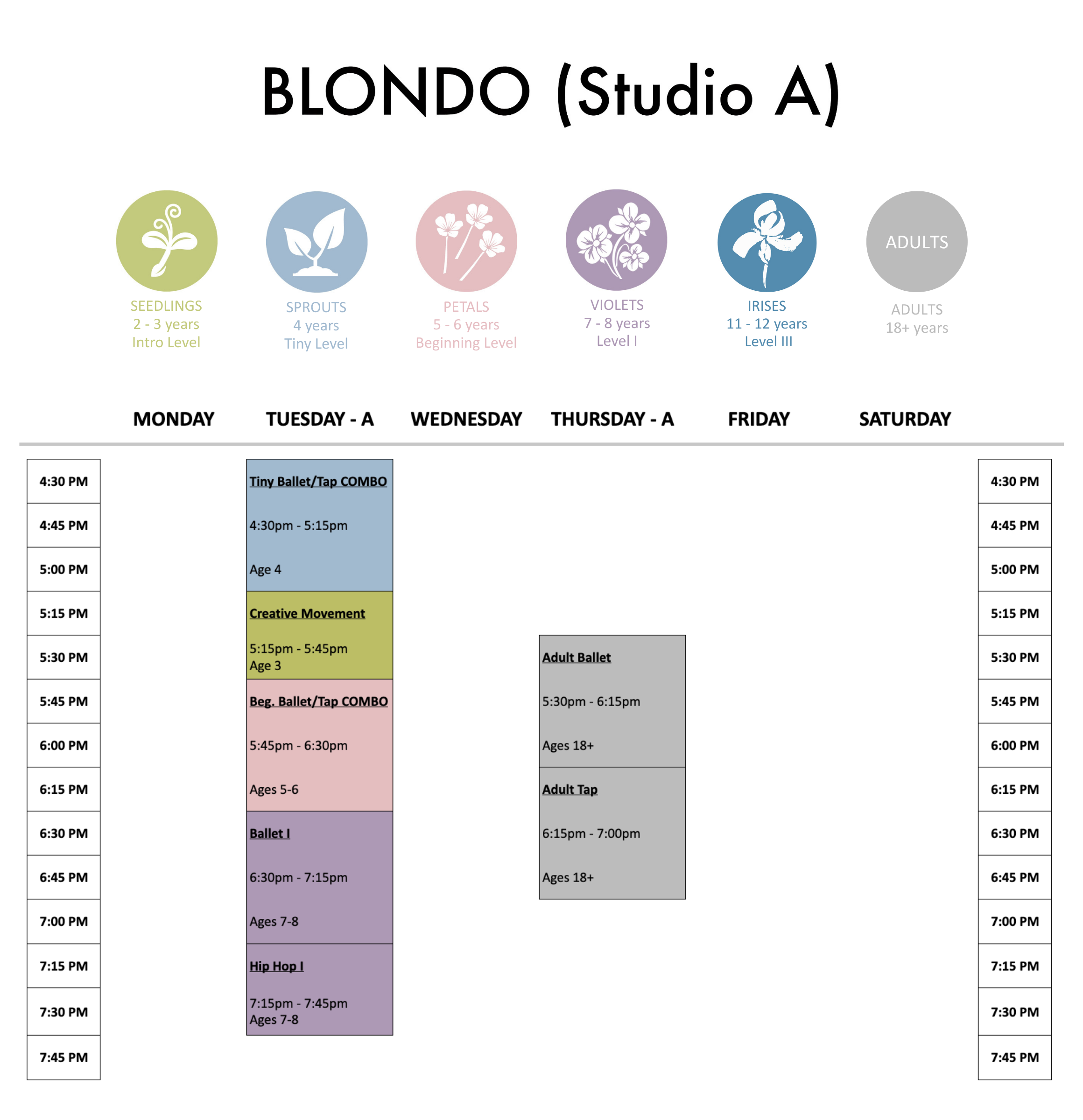 Dancers must turn ‘#’ years old before July 1st to qualify for the listed class ages.