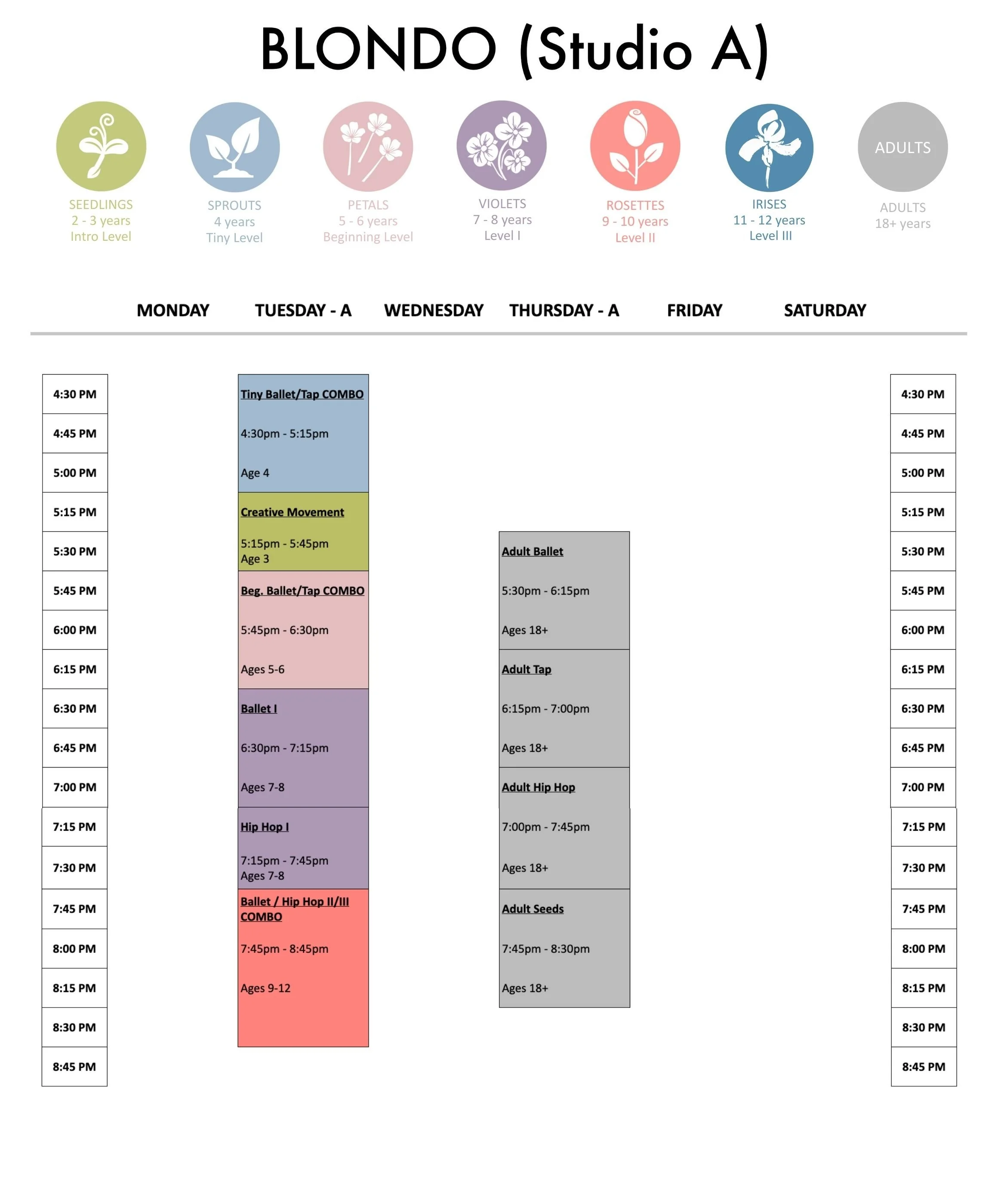 WEEKLY SUMMER CLASS SCHEDULE